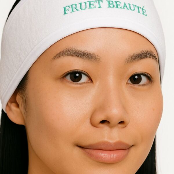 Spa Headband : Faixa de cabelo para Home Spa com logo Fruet Beauté.